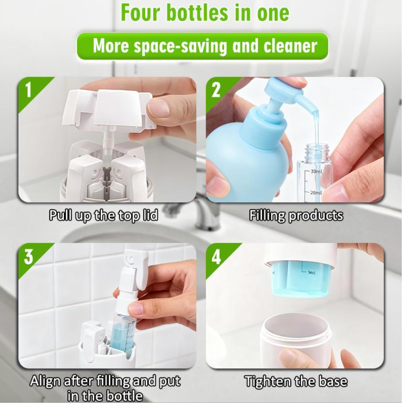 Compatible With: Shampoo, conditioner, lotion, perfume and most liquid products