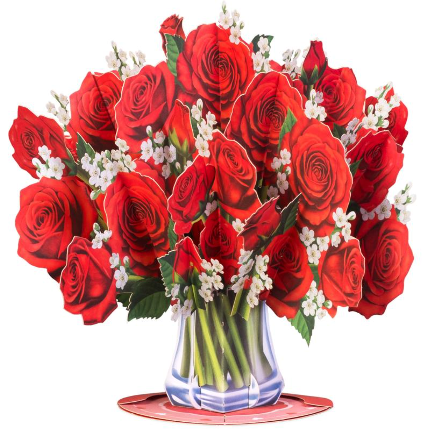 The flowers are beautifully crafted paper that pop up in 3D when you open the card. They last forever unlike real flowers!